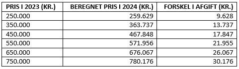 Sådan ser afgifterne ud i 2024